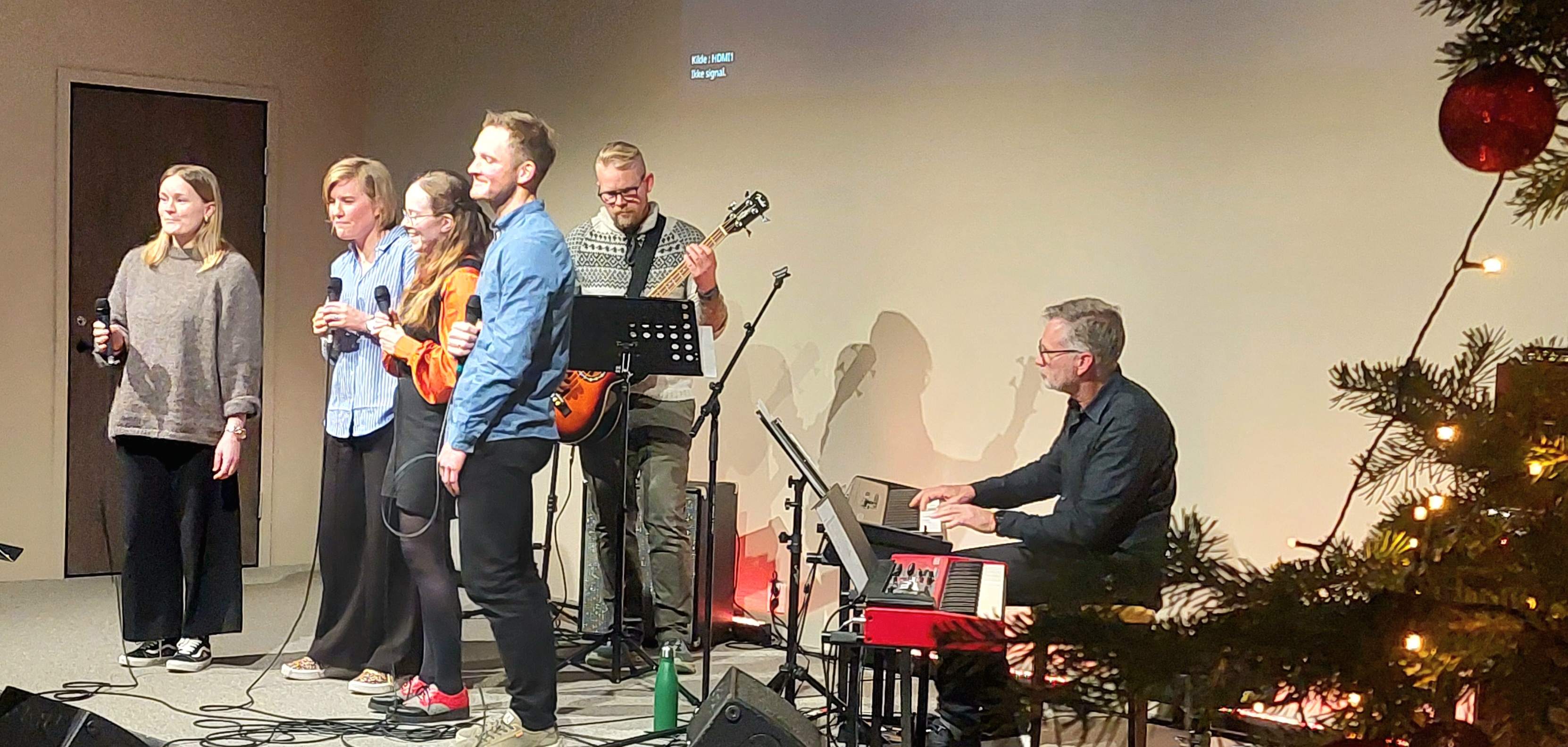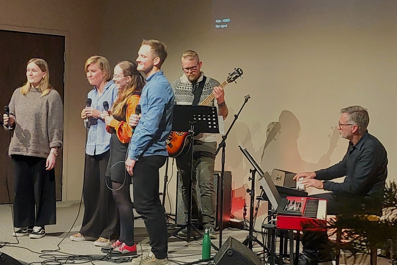 Sunniva Gregersen, Iselin Tveit, Vendel-Agathe Skartland-Hide, Vegard Skartland-Hide, Håvard Tveit og Arne Tveit formidla vakker song og musikk i Arken ein hustrig fredagskveld på slutten av november. Det vart ei fin oppleving for dei mange frammøtte.
