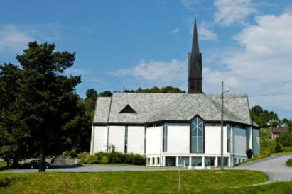 Nye Skjold kyrkje stod ferdig i 1999. Det er ei åttekanta kyrkje bygd i mur med plass til 400 personar.