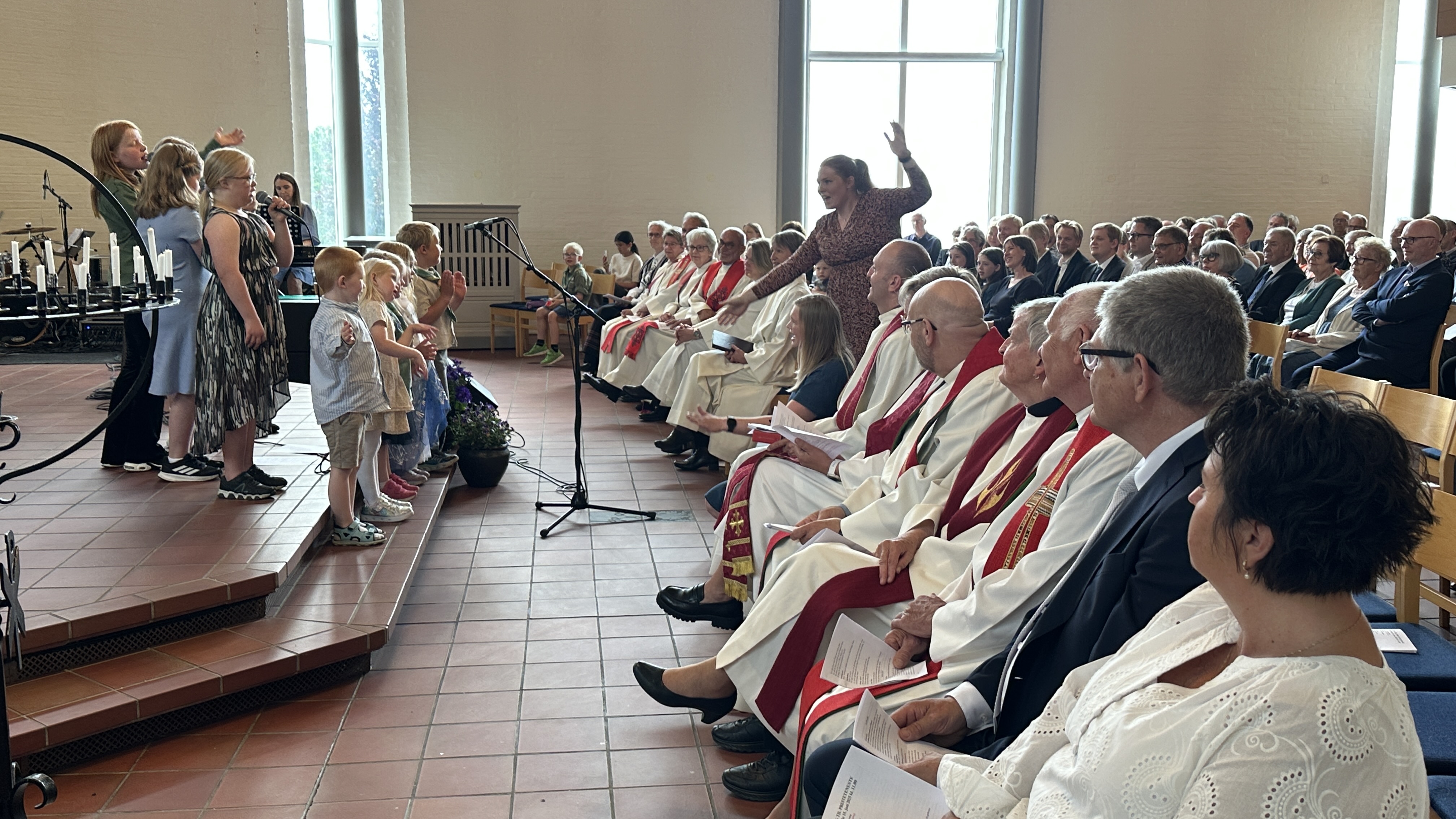 Lokalt barnekor song fleire songar i starten av gudstenesta.