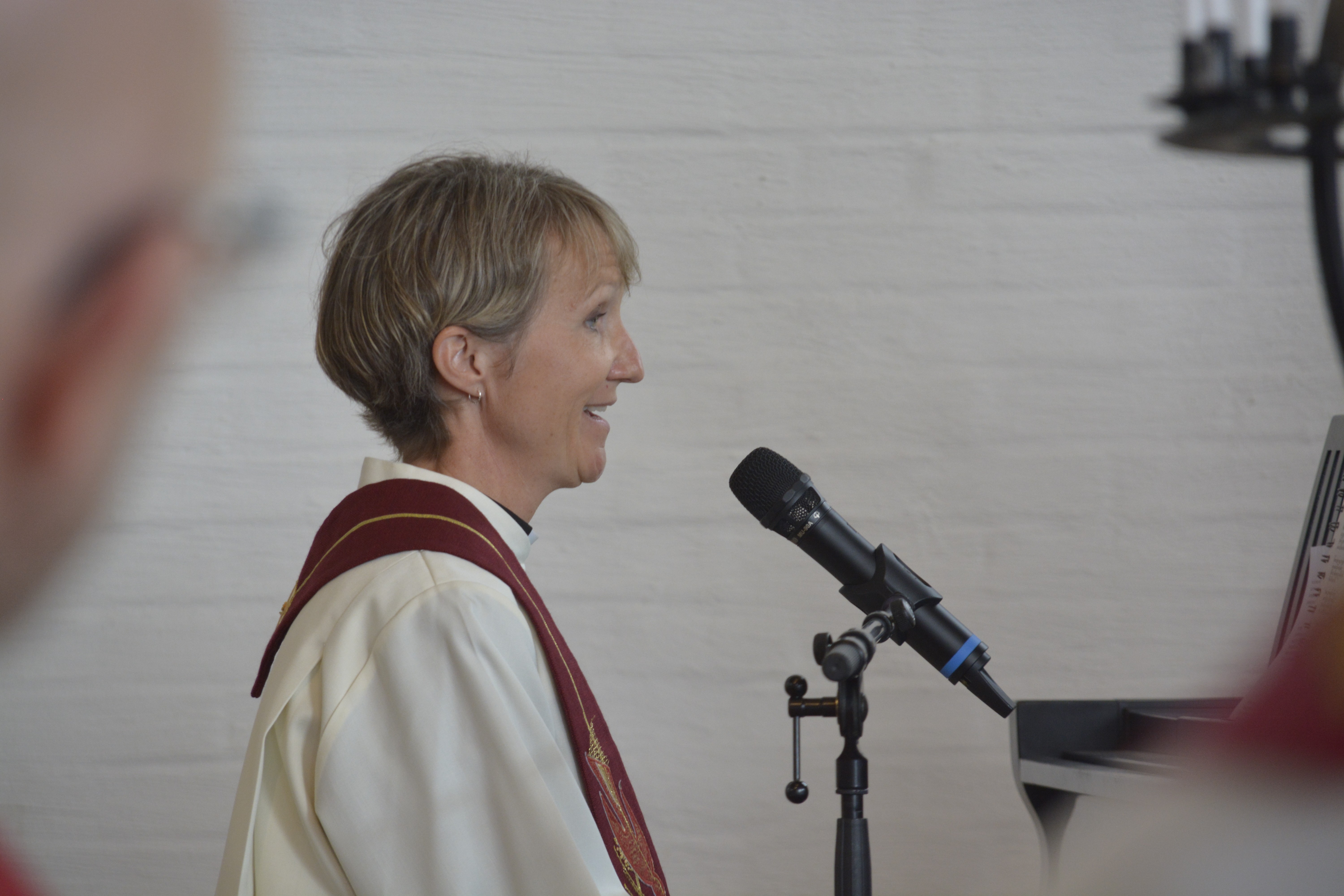 Eli Kolstad framførte vakker song til eigen musikk på flygelet og deltok seinare i gudstenesta saman med biskopen under nattverden.