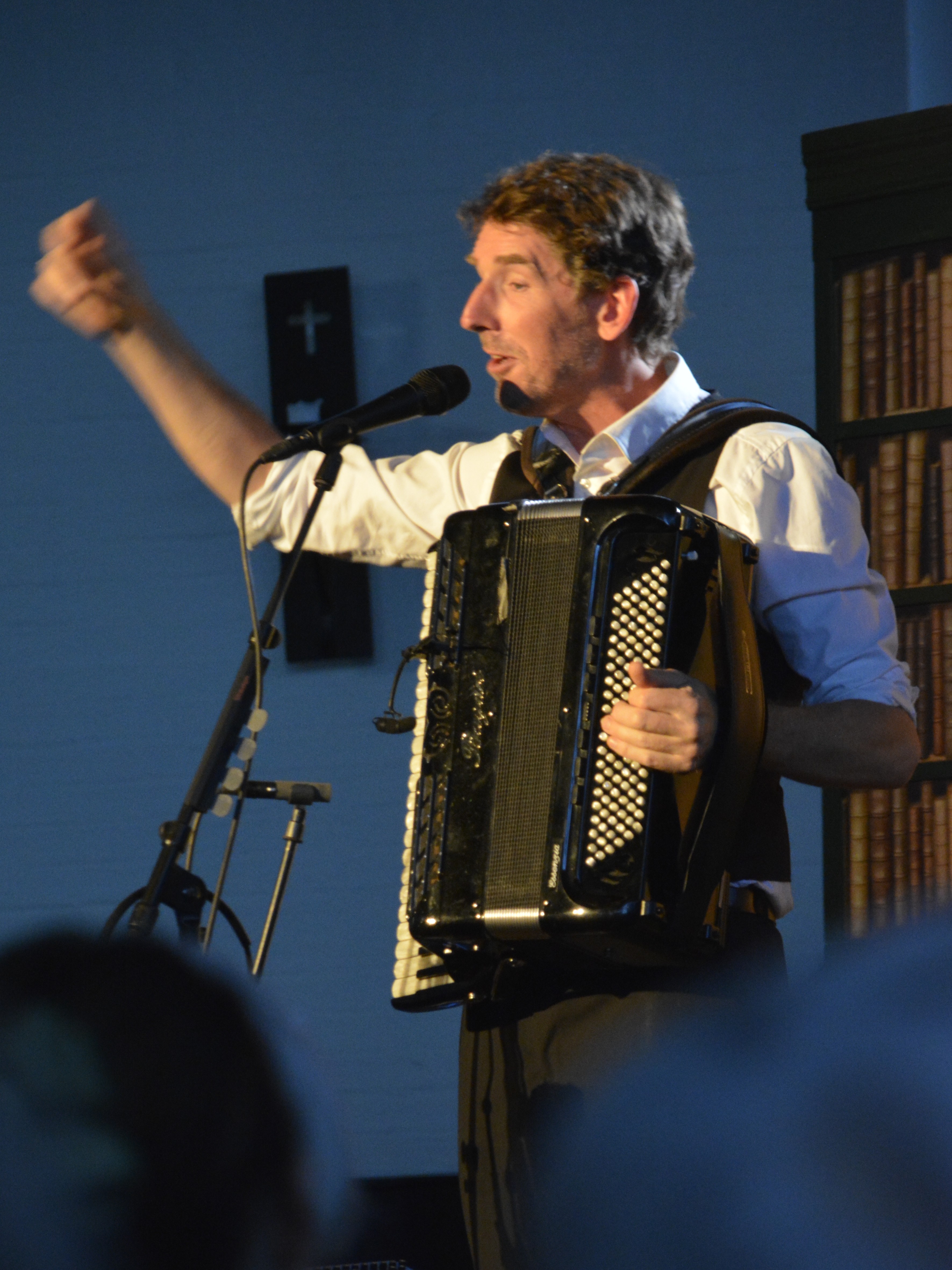 Odd Nordstoga - åleine på scena med trekkspelet, gitaren og sine musikalske forteljingar.