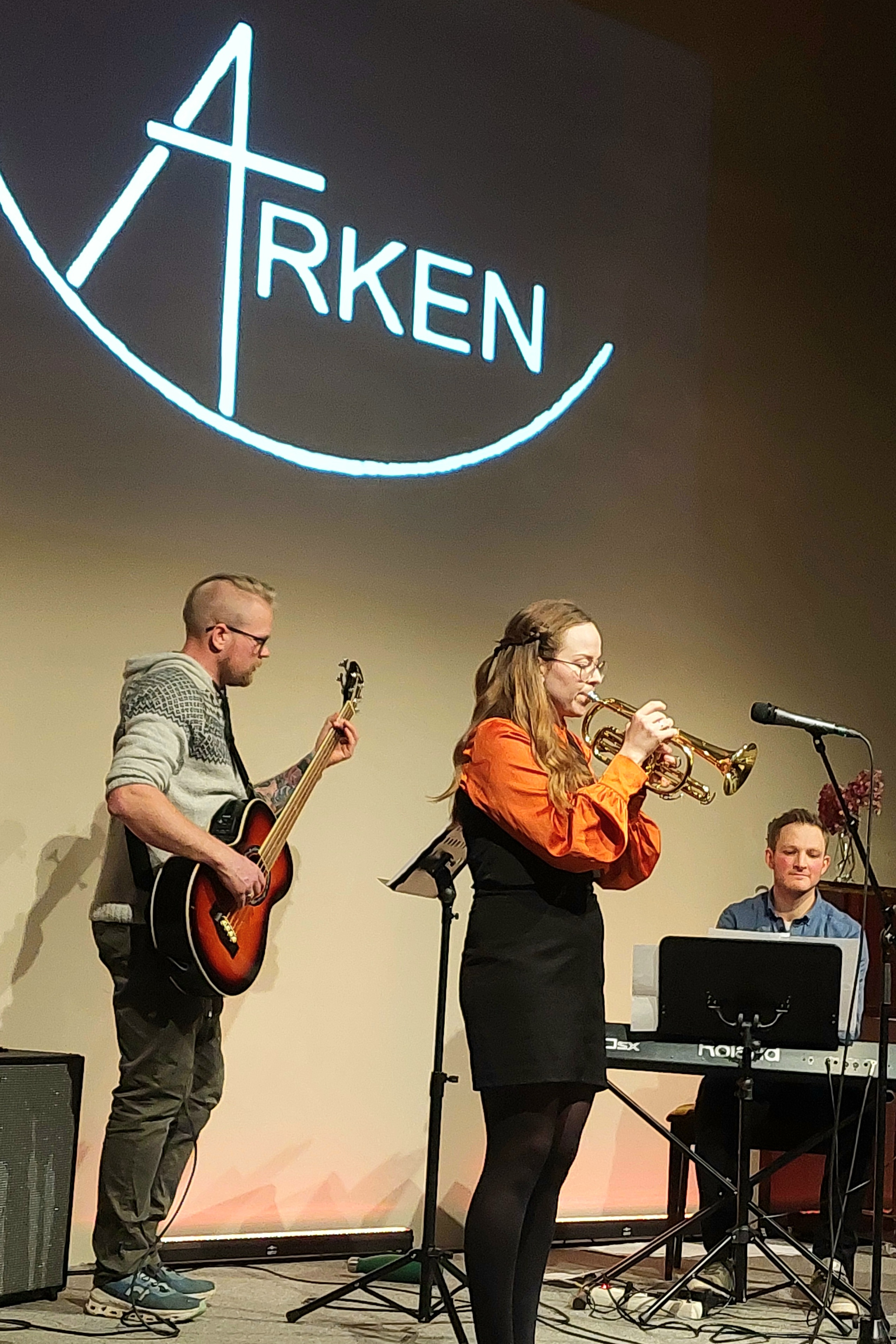 Sunniva Gregersen, Iselin Tveit, Vendel-Agathe Skartland-Hide, Vegard Skartland-Hide, Håvard Tveit og Arne Tveit formidla vakker song og musikk i Arken ein hustrig fredagskveld på slutten av november. Det vart ei fin oppleving for dei mange frammøtte.